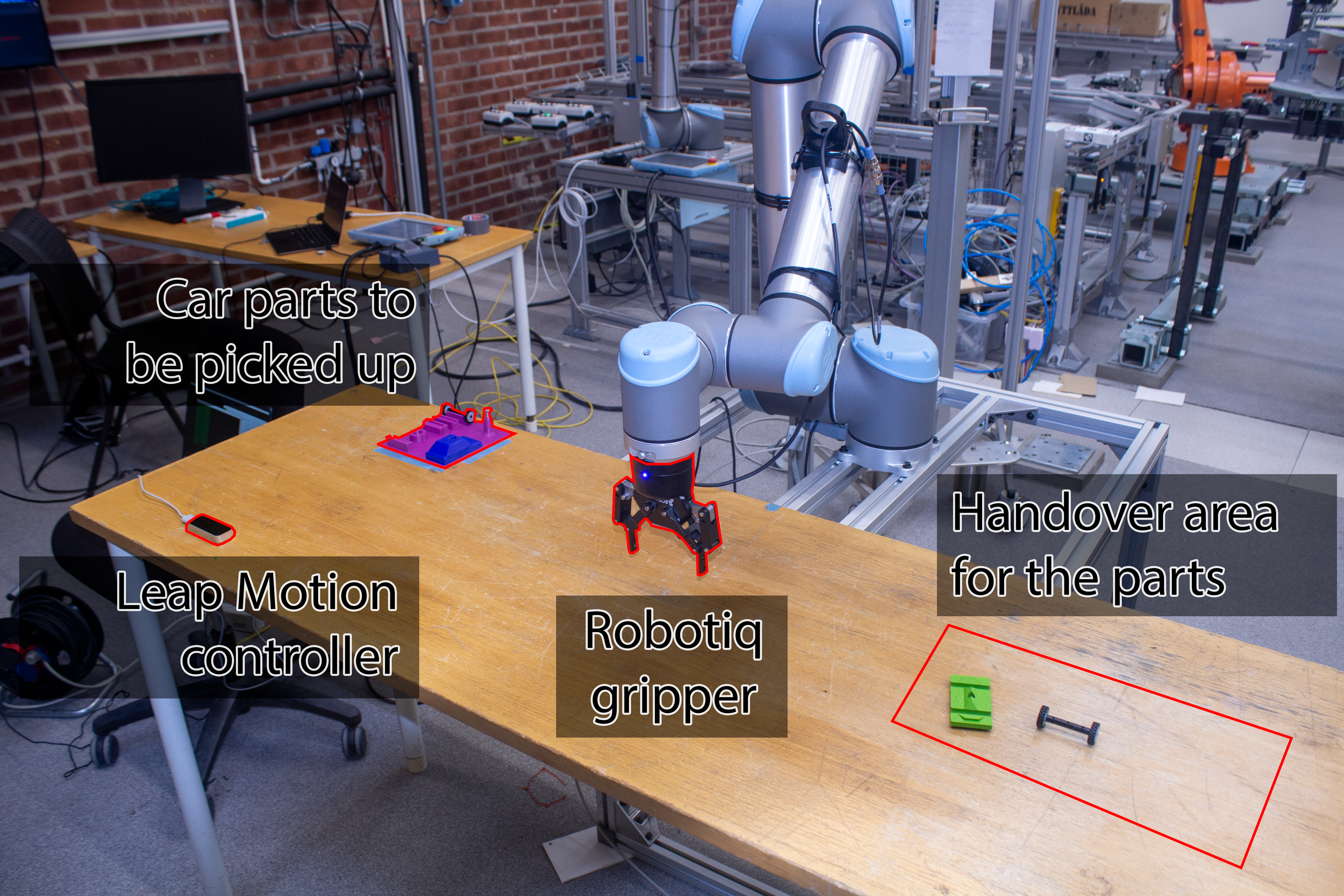 Working in a team of five we have created software for a COBOT to be controlled with hand gestures via Leap Motion Sensor.